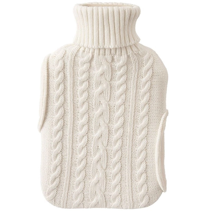 Wärmeflasche Bettflasche Gummi-Wärmflasche im Pullover Bezug beige 1,6 L 33x20 cm