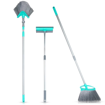 Reinigungsset Besen, Fensterabzieher, für Staub und Spinnweben Teleskop 3 Stk. | Handfeger und Schaufel, Besen, Set