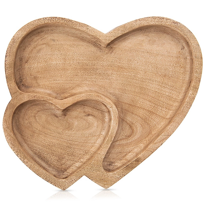 Servierplatte aus Holz Doppelt Herz MANGO 23x20 cm | Serviertablett , für Speisen, Snack