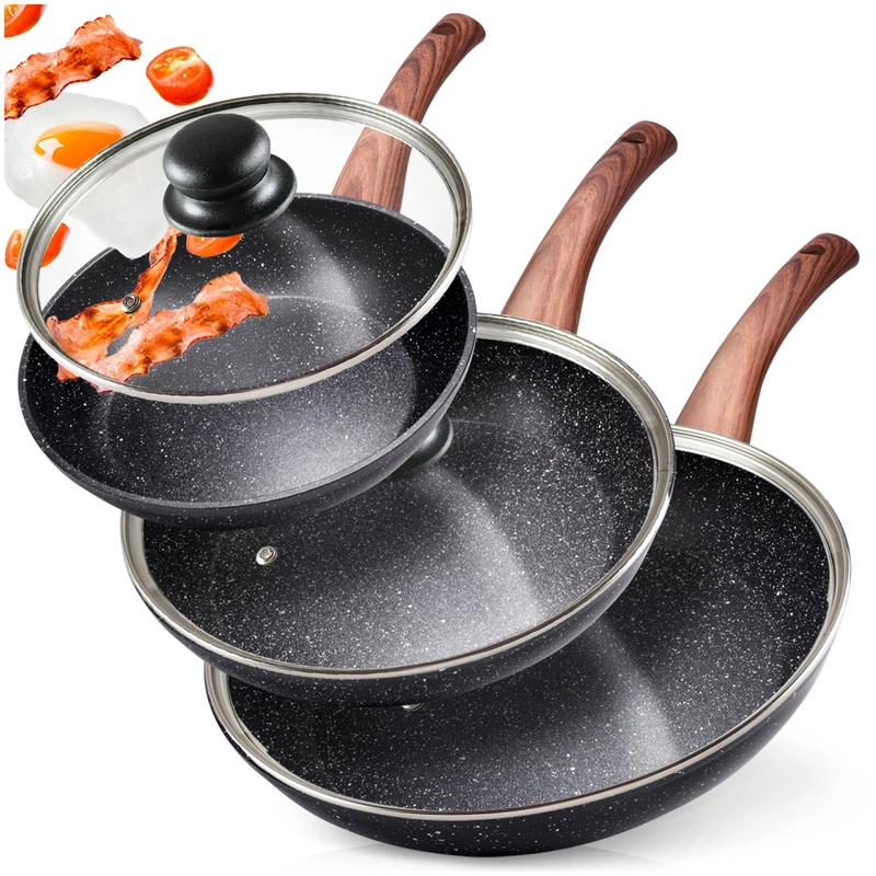 Pfannenset Granit BLACK&WOOD 20 / 24 / 28 cm 3 Stk. | Bratpfannen, Pfanne, Antihaft