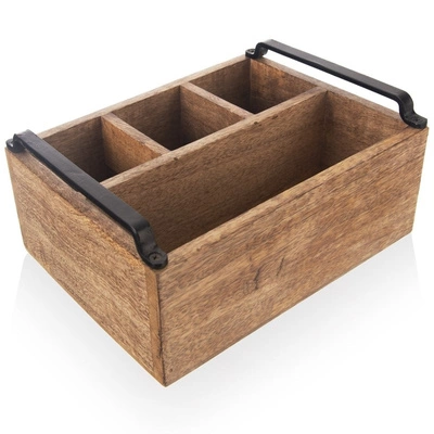 Holzbehälter Besteckhalter Besteckkorb Besteckkasten Besteckständer mit 4 Fächern für Besteck Saucen Servietten und Gewürze
