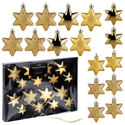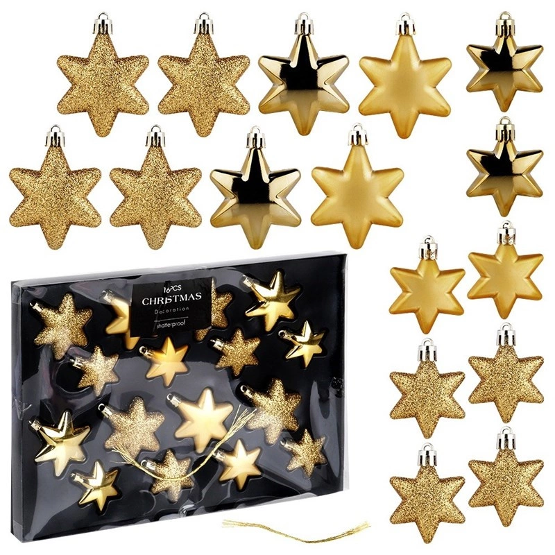 Weihnachtskugeln Christbaumkugeln Sterne Sternkugeln bruchsicher goldfarben 6/5 cm 16 Stk.