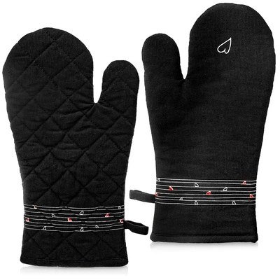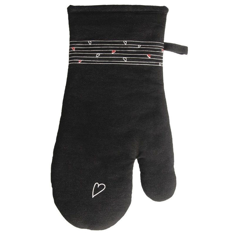 Küchenschürze Kochschürze mit Tasche mit Bindeband aus Baumwolle schwarz Herz