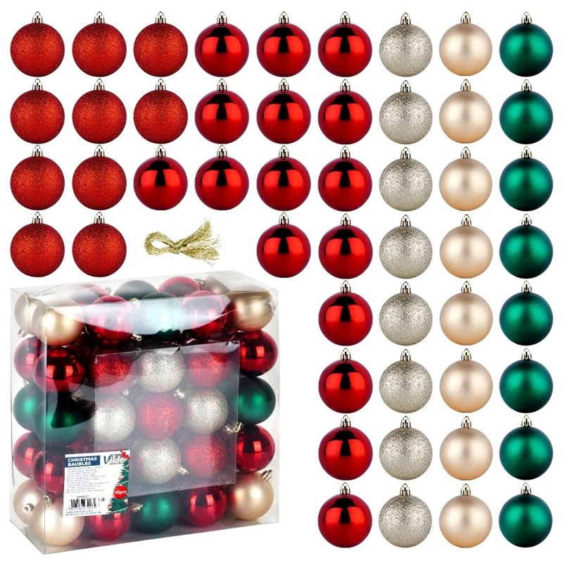 Weihnachtskugeln Tannenbaumkugeln Weihnachtskugelset bruchsicher rot grün champagner 6 cm 50 Stk.