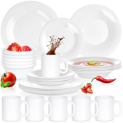 Tafelservice aus Glas Weiß 30 Stk. | Geschirrset, Teller Set, Geschirr Tellerset