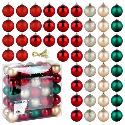 Christmas Baubles Unbreakable Red Green White 57 pcs
