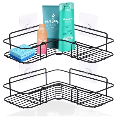 Shower Shelf Corner Adhesive Metal Black 3 pcs