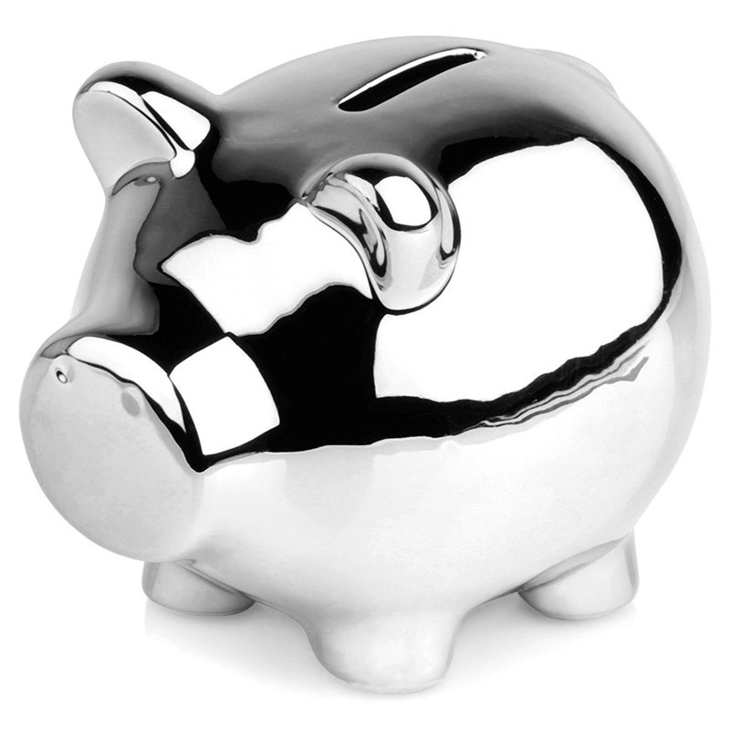 Piggy Bank Ceramic Silver Mirror 11.5 x 9 cm