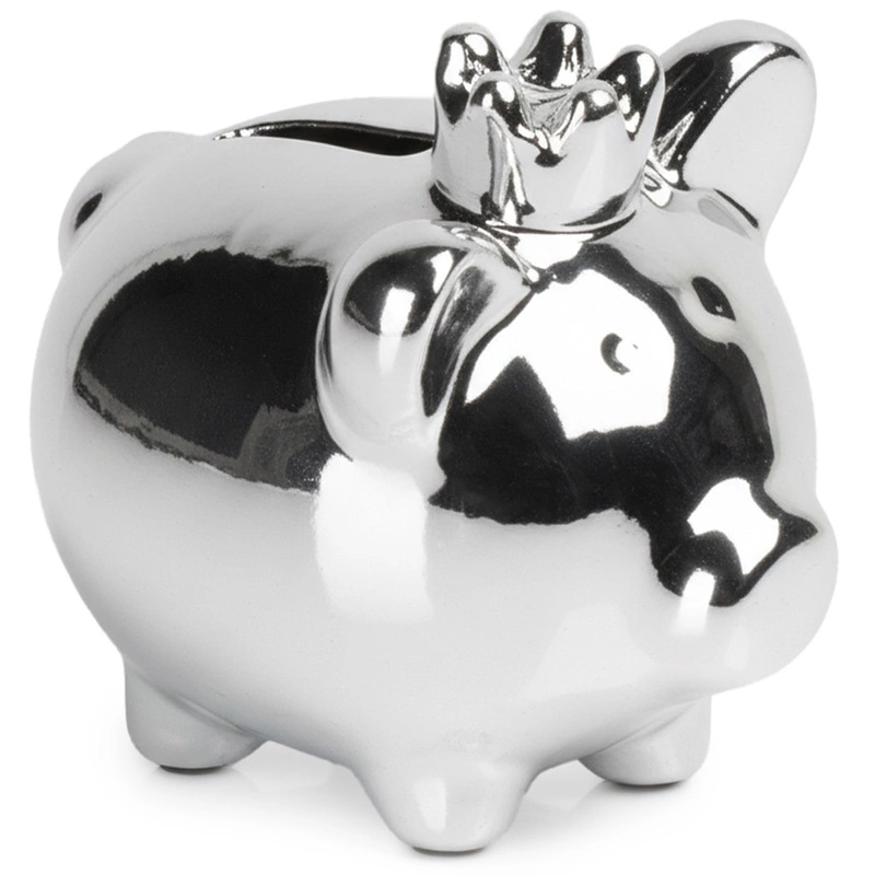 Piggy Bank Ceramic Silver Mirror 9.5x7x8.5 cm
