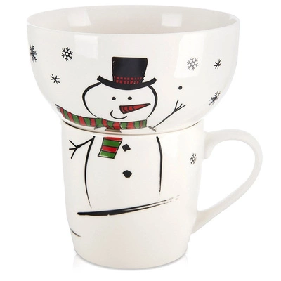 Kids Mug with Bowl Porcelain Snowman 2 pcs