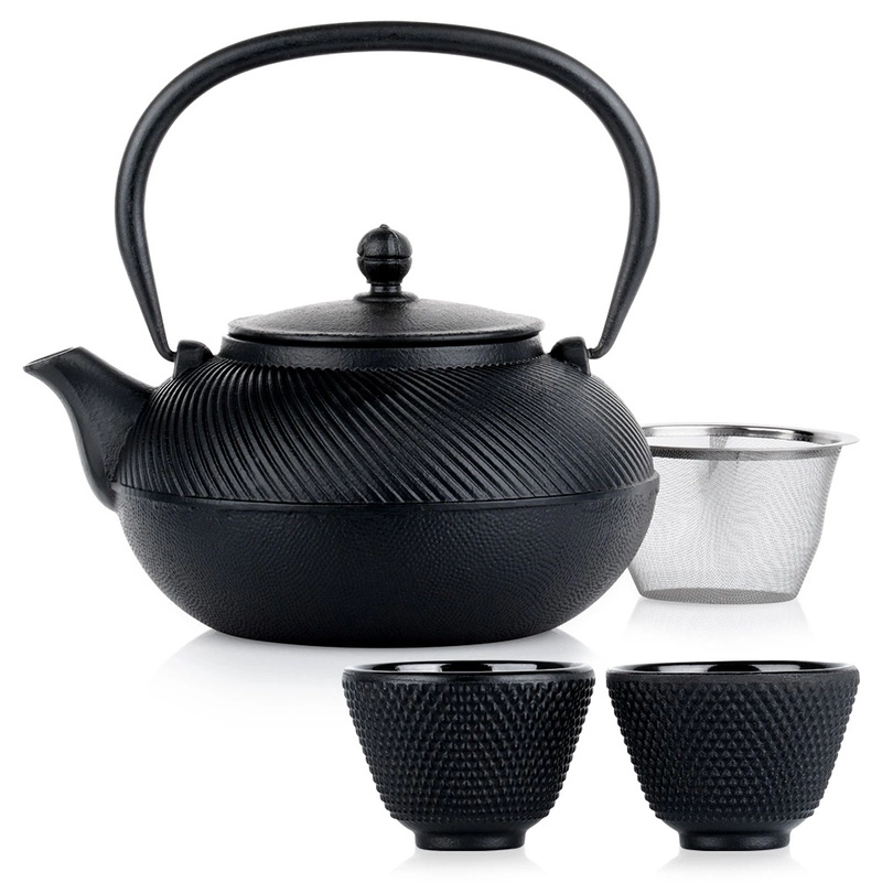 Sold outTeapot with Infuser Cast Iron Enamel and Tea Mugs CAST LINE 1 l / 60 ml, 4 pcs