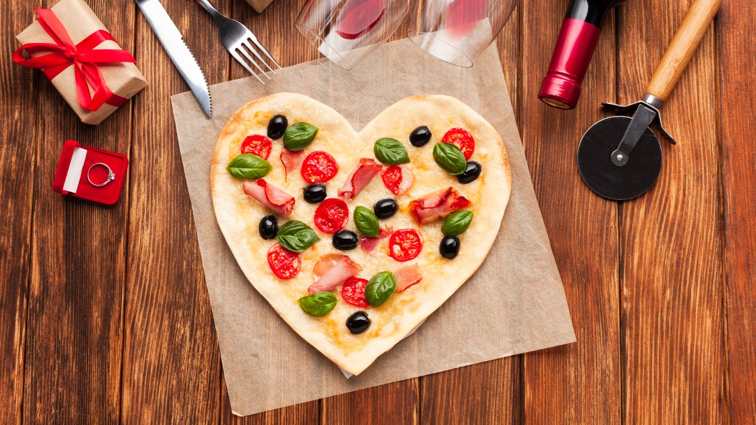 • Reversible wooden board for serving and cutting. One side features grooves that allow for cutting pizza into 6 equal slices, while the other side has a smooth surface.