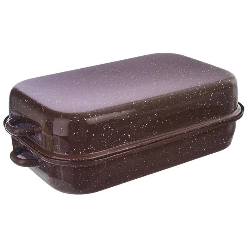 Roasting Tin Enamel with Lid Rectangular BROWN 14 l, 46x27.5 cm