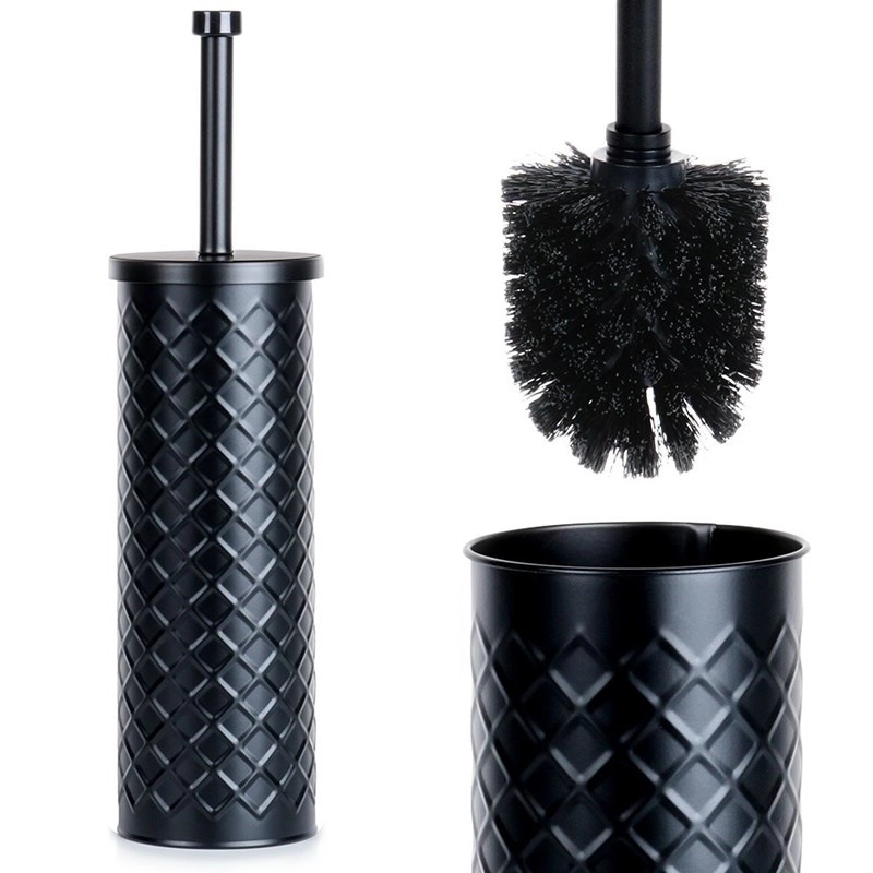Szczotka do toalety ze stojakiem metalowa czarna 38x10 cm