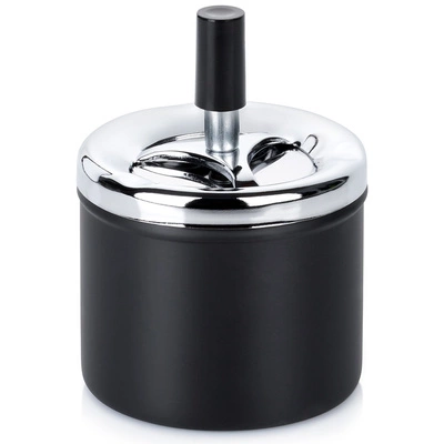 Popielniczka zamykana metalowa czarna obrotowa 9,5x13 cm