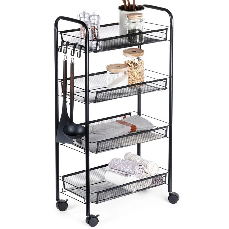 Wózek do przechowywania metalowy czarny 4-poziomowy