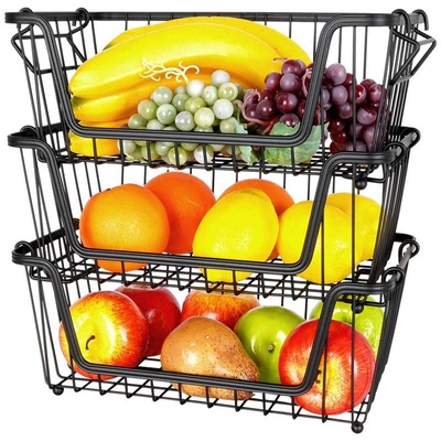 Koszyk na owoce i warzywa metalowy czarny loft zestaw 3 szt. 32x20x13,5 cm