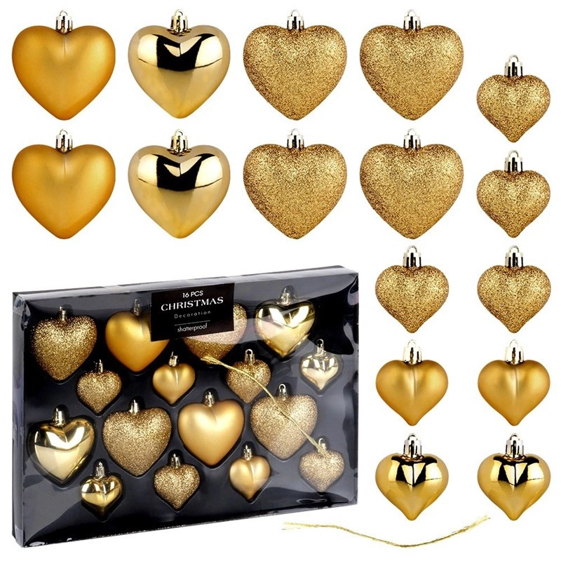 Bombki choinkowe nietłukące serduszka złote 6,5/4,5 cm 16 szt.