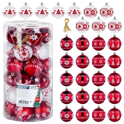 Bombki choinkowe nietłukące czerwone białe 6 cm 30 szt.
